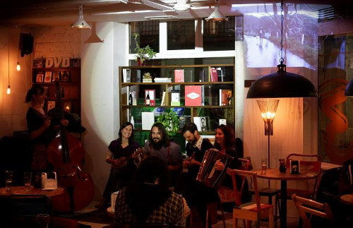 Tras la proyección hubo un coloquio donde los asistentes pudieron comentar sus impresiones sobre el largo. Posteriormente, el debate continuó ambientado por la música del grupo Fabes de Mayo, que puso otra banda sonora a escenas proyectadas sobre los muros del local. Los sonidos permitieron evocar distintas sensaciones observando las imágenes bajo una nueva perspectiva.